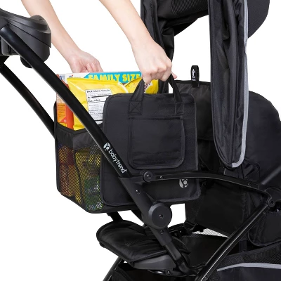 Sit N’ Stand 5-in-1 Shopper Plus offers ultimate storage solutions with its included Bench Tote and MagneTec™ Basket. The Bench Tote can be easily attached to the Shopper’s bench for extra storage, or it can be used separately as a shopping tote! Designed with mesh siding, easy-grip handle and perfect size, it holds 20lbs of your strolling necessities or groceries. With the innovative MagneTec™ Basket, parents can open and close the basket very quickly with the help of strong magnets to hold the basket closed. This practical extra-large basket and tote together can hold up to 50lbs of parents’ essentials – groceries, toys, diaper bags, etc.