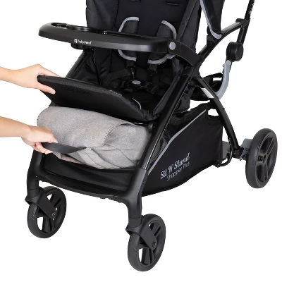 The Baby Trend® Sit N’ Stand® 5-in-1 Shopper Plus Stroller is perfect for your growing family. With the new compact and streamlined frame, our Sit N’ Stand® 5-in-1 Shopper Stroller has 5 modes of use – car seat travel system mode, car seat in the front seat with sibling on platform, child in the stroller seat only, child in the stroller seat with sibling sitting on bench, and child in the stroller seat with sibling standing. The front and back seats can hold kids up to 50lbs each.