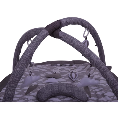 - Bacati Baby Activity Gym includes play mat, arches with 4 toys and crescent moon shaped pillow packaged in a polyzipper bag