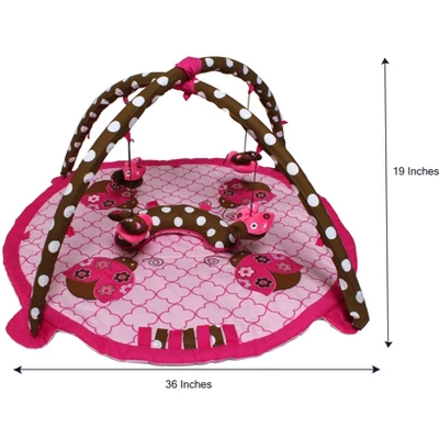 - Bacati Baby Activity Gym includes play mat, arches with 4 toys and crescent moon shaped pillow packaged in a polyzipper bag