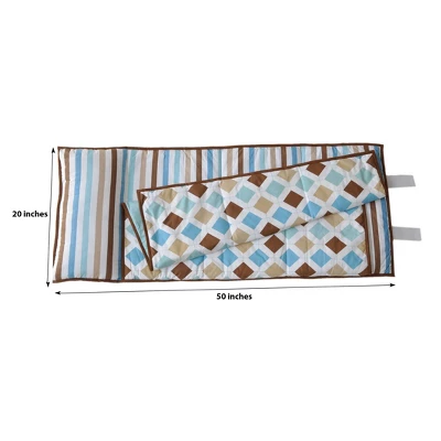 The Bacati Toddler Nap Mat is our cutest nap mat yet and customer favorite! With an attached comforter blanket and a convenient removable pillow, you can be sure your little one will stary warm and cozy. The mats are made for children of all ages and sizes measuring in at 20 x 50 inches. It rolls up with a snap closure and has a carrying handle for added convenience. Perfect for nap time at preschool, daycare or even sleepovers at grandmas house. Its large size makes it versatile as a playmat as well as a nap mat. The toddler nap mat is machine washable and gets softer with every wash. The shell is made 100% cotton percale fabrics that are hypoallergenic, breathable and perfect for childrens sensitive skin. The attached blanket is also 100% cotton percale with polyester batting. It has a layer of polyester batting inside the bottom of the mat, to provide added comfort and support. Also included is 100% polyester filled removable pillow.