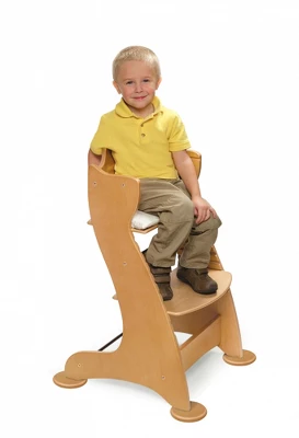The Embassy Baby High Chair offers you unsurpassed value as a handsome, wood high chair with extended use up through adulthood! Comfortable and convenient, it is a complete high chair for your baby, a booster chair for your toddler and preschooler, and eventually an attractive kitchen or desk chair for tweens, teens, and adults. You will appreciate the useful features built-in for Baby’s first chair, and the ease with which the Embassy grows with your child over the years. Height/position adjustments are simple to do and quickly and easily completed. No complicated tools or parts required. Includes two feeding trays! Dishwasher-safe, plastic tray covers the main wood tray. It is easy to tidy-up and have a clean surface available for Baby at each meal. Transparent plastic tray shields the top and around all edges, while allowing the beauty of the wood shows through. The removable, plastic tray includes one cup holder and a large main compartment. It detaches easily by releasing the clips that snap to the main tray on both sides. Deeply indented plastic tray keeps food and liquids contained.
