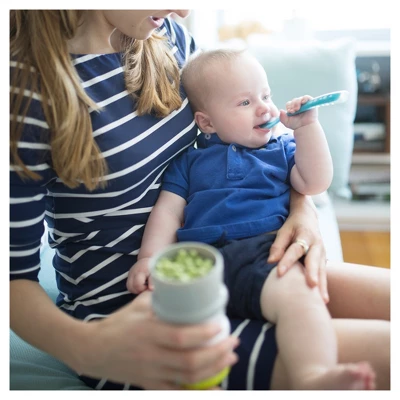 This set of 4 first stage silicone spoons is designed for babies being introduced to solids. The handle is designed for adult hands easily to be able to feed baby. Made of ultra supple silicone to be kind to baby’s gums. Dishwasher safe.