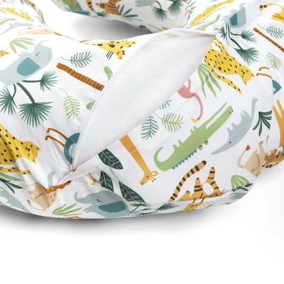 A durable cotton blend pillow cover in a fun print to support your style, you and baby.