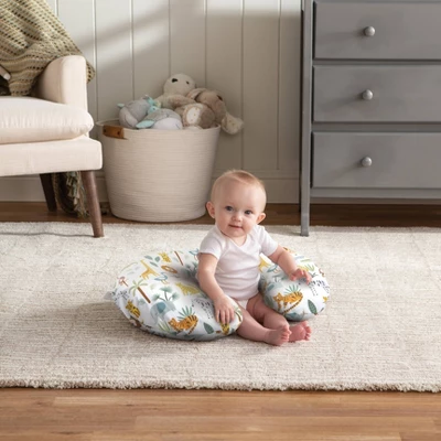 The Boppy Feeding and Infant Support Pillow is sold separately. It ergonomically supports you while nursing or bottle feeding. Versatile to grow and support baby during supervised awake time through first year milestones. Feeding (0+ months), propping (3+ months), tummy time (6+ months) and sitting (9+ months).