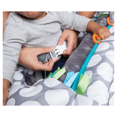 VIP seating while on the go! Your baby will be safe and protected from messes in the Boppy Luxe Shopping Cart and Restaurant High Chair Cover while you are out and about. Designed with a 2-point safety strap to keep your baby secure. Includes a plush comfy seat made of soft minky fabric and attached toys to keep your baby comfy and entertained. Patented SlideLine system attaches toys, pacifiers or other lifesavers for your baby to keep them within reach. You two won’t want to leave home without it. Also includes a bottle pocket and large storage pocket for your essentials.