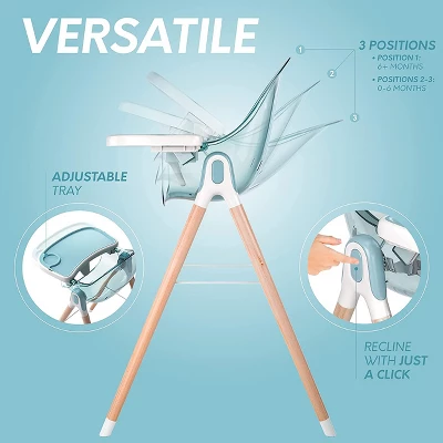 - This versatile chair offers three reclining positions and an adjustable tray. Recline the chair with a simple click.