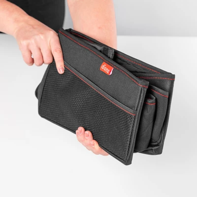 The Diono Travel Pal is the perfect in-car storage bin, with 8 multi-purpose pockets there’s room for all their travel essentials. Great for busy back seats, whether it’s the children’s favorite books, toys or pacifiers, or your dog’s leads and treats, Travel Pal is there to keep you organized. The handy insulated drinks holder also keeps drinks cool and thanks to the waterproof, wipe clean fabric you’ll never have to worry about spills on the back seat. Simply fit in the back seat or between two car seats and secure with belt pack provided. And when not in use quickly fold away for easy storage, in the seat back pocket, or in the trunk.