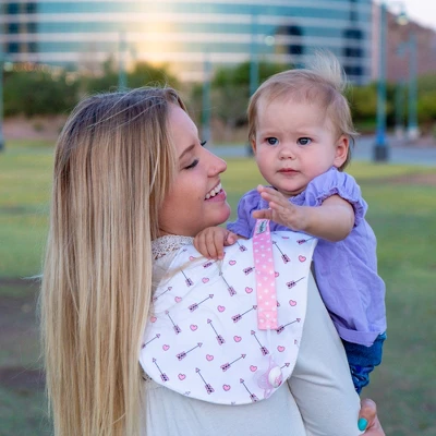 - Dont lose that binky: Each unisex gift set of 5 burp cloths comes with a handy pacifier case and 2 pacifier clips (for attaching the binky to Babys clothing). Clips have fabric straps in coordinated patterns and colors
