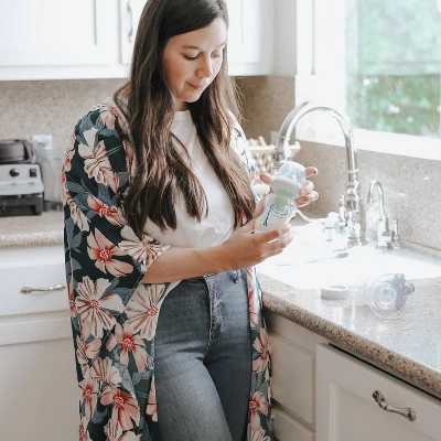 Late night pumping. Engorgement relief. Even a full expression session. The Dr. Brown’s™ Manual Breast Pump with SoftShape™ Silicone Shield is your quiet yet powerful pumping companion. The soft, 100% silicone SoftShape™ Shield conforms to different breast shapes, offering flexible, more comfortable pumping for more moms. Two pumping modes better mimic baby’s natural feeding; start with shorter, quicker pumps to stimulate letdown, and with an easy adjustment, switch to longer pumps to imitate baby’s more relaxed feeding. The Dr. Brown’s Manual Breast Pump comes with the Dr. Brown’s™ Options+™ Anti-Colic Wide-Neck Bottle featuring the breast-like nipple in Level 1 Slow Flow. Throw in the Storage Travel Cap, and you have everything you need to pump, store and feed! SoftShape™ Silicone Shield comes in Size B (25 mm). Additional sizes available for purchase. All parts are dishwasher safe (top rack). BPA free.