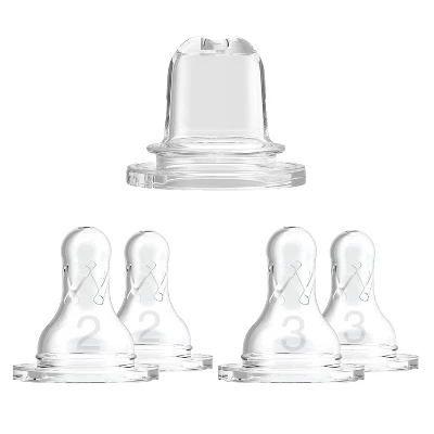 The Anti-Colic Baby Bottle Essentials Gift Set includes: 2 – 4oz/120mL Dr. Brown’s™ Options+™ Anti-Colic Baby Bottles and 3 – 8oz/250mL Dr. Brown’s™ Options+™ Anti-Colic Baby Bottles, 2 – Extra bottle nipples to support baby through every stage of feeding (1 – Level 2 Nipple, 1 – Level 3 Nipple), 1 – Sippy Spout, 2 – Storage Travel Caps, 1 – Silicone Handle, and 1 – HappyPaci™ silicone pacifier (0-6m) shaped the same as Dr. Brown’s Nipples for increased acceptance.