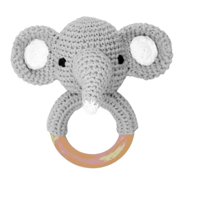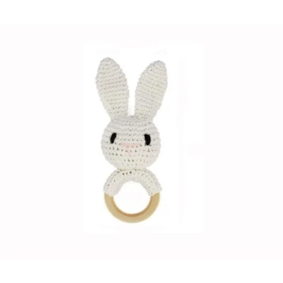 Our handmade sweet animal-faced rattle toy with wooden teething handle is the perfect gift for any newborn. Shake for a gentle sound that is stimulating and will bring a smile to any baby.