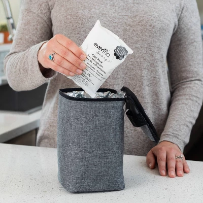 The Evenflo Feeding Advanced Manual Breast Pump is lightweight, portable, and designed for occasional-use pumping. A manual breast pump does not require power and is great to have to help relieve pressure when your milk comes in, use if baby sleeps through a feeding, or take with you for an extended date night. To help keep you comfortable, multiple flange sizes (24.5mm & 30.5mm) are included with your pump. The flange is the part of the pump you place against your breast. A proper flange fit is important – it not only gives you a comfortable, more gentle pumping experience, but also equates to more milk. If the flange does not fit properly, you may experience discomfort and/or a decrease in your milk expression. The pivoting pump handle will also help you pump comfortably. The handle is easy to hold in either hand and rotates to allow for multiple pumping positions. To pump, simply start with a fast, short pumping motion to help stimulate your first milk release (letdown). As milk starts to flow, transition into a slower, longer pumping motion. If you need assistance, our team of Breastfeeding Experts are available for one-on-one pumping support. In addition, we encourage you to register your breast pump to access your breastfeeding and breast pump education. This deluxe package also contains a variety of pumping and feeding accessories, including: an insulated cooler bag, two ice packs, and one extra breast milk collection bottle with a Balance + Standard Neck Slow Flow Nipple and hood, so you can pump and feed on-the-go.