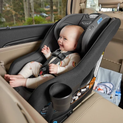The Graco® Contender™ Slim Convertible Car Seat features 2 modes of use to grow with your child from rear-facing harness (5-40 lb) to forward-facing harness (22-65 lb), with a slim car seat design that helps save space in your back seat. This is the perfect travel car seat as its lightweight design easily transfers from car to car, and it is certified for aircraft use to help keep your child safe while flying. It easily grows with your child with the Simply Safe Adjust™ harness system, which allows the headrest and harness to adjust together in one motion. The included LATCH and easy-to-read level indicator help make installation easier. This car seat conveniently features a removable, dishwasher-safe cup holder, a machine-washable seat pad, and 2 recline positions for ease of use. The car seat is Graco® ProtectPlus Engineered™ to help protect in frontal, side, rear, and rollover crashes.