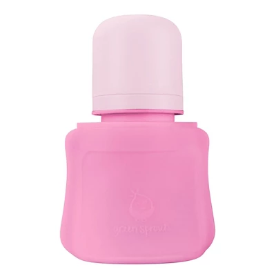 Keep your little one sipping safely throughout development stages with our green sprouts Silicone and Sprout Ware Baby Pocket (8 oz.). Our Sprout Ware plant-plastic collar & travel cap is an innovative non-toxic, lightweight, durable, and recyclable material made without PVC and hormone disrupters like BPA for babys health and safety. The Baby Pocket pouch is made from 100% food-safe, platinum-cured silicone that is soft, flexible, and lightweight. These pouches stand upright to easily add formula or breastmilk. The silicone pouch itself is safe for the freezer, stovetop, microwave; can be pumped into directly for feeding or storage. The soft silicone nipple has accordion base for increased flexibility, as well as a wider base to mimic the breast more closely. The wide neck makes this baby pocket easy to fill and clean by hand for longevity, but all parts are dishwasher safe. Made with love for little ones 3 months and up and holds 8 ounces (236 ml) of liquids. Our baby pocket has interchangeable parts with other green sprouts bottle and cups and are compatible with most wide-neck breast pumps and bottle brands.