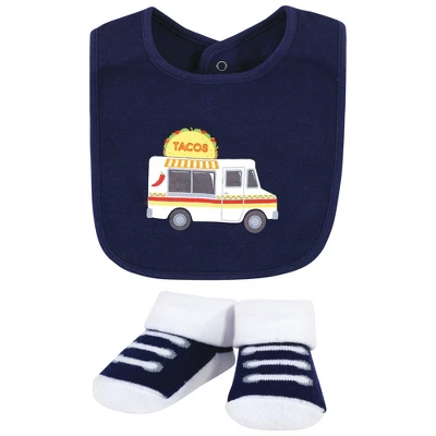Hudson Baby bib and socks set are an adorable accessory set for fashionable matching bibs and socks. Each set features fun, cute bibs and socks made with coordinating fun, stylish prints. Our accessory set is a great baby shower gift.