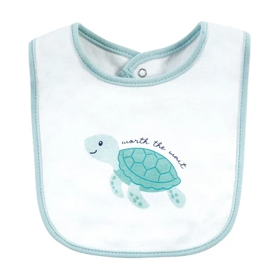 Hudson Baby interlock cotton drooler bibs are fashionable baby bibs made with two layers of soft, gentle cotton. Our bibs feature cute prints and embroideries and are great fashion bibs over baby’s clothes to keep their outfits clean. Our bibs are great for drooling, feeding and more.