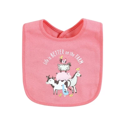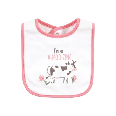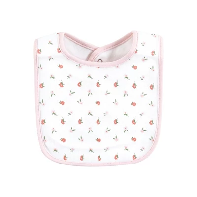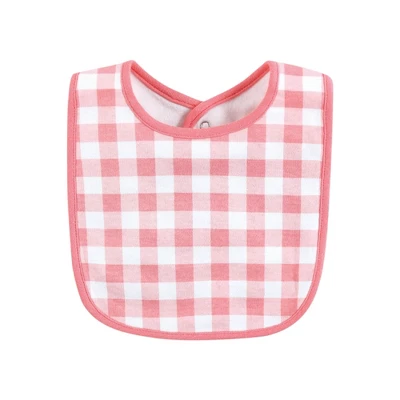 Hudson Baby interlock cotton drooler bibs are fashionable baby bibs made with two layers of soft, gentle cotton. Our bibs feature cute prints and embroideries and are great fashion bibs over baby’s clothes to keep their outfits clean. Our bibs are great for drooling, feeding and more.