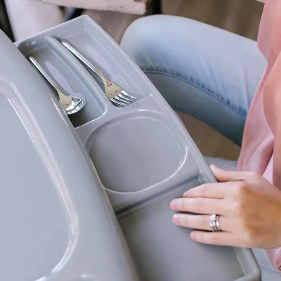 - Hidden tray extension stores utensils & more