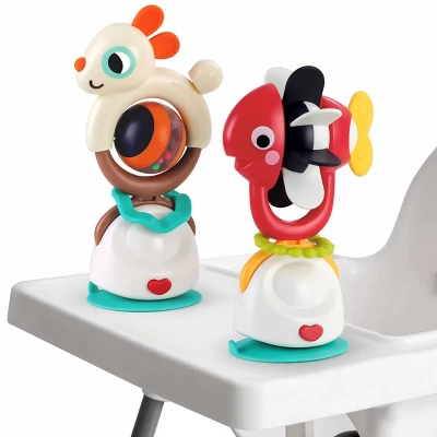 Strong suction base easily attaches to the high chair, table, tray, floor or any smooth surfaces (Wetting for more suction) for frustration-free play. Make Monthers’ feeding Easily. Press the red heart button on the base to separate the baby grip rattle toy. The handle rattle is a suitable size for baby’s small hands. Baby can easily handle it and take it anywhere, like lying down, taking a shower, sitting in a stroller, etc Baby can spin, press, and twist different parts of the toy to strengthen fingers dexterity, hand-eye coordination and counting skills. Selected ABS material that is safe and odorless, safe for baby to play. Beside using safety materials, the product design is also very safe with round polishing, fine skin soft technology to gently care for the baby’s small hands. Safety material & multi-functional creative design, is a great newborn gift for 6, 7, 8, 9, 10, 11, & 12 Month as well as 1-3 Yr old toddlers.