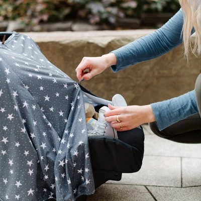 JJ Cole’s DreamGuard Canopy lets you give your baby a barrier from both the elements and nasty germs. This baby car seat cover adapts easily to many different styles of infant carriers for a secure fit that creates a cozy cocoon for your precious cargo. The double zip closure lets you quickly take a peek or get your baby in and out of the car seat with ease. The canopy cover doesn’t just make a cute fashion statement, it’s also practical with a breathable material that allows for airflow around your baby. When not in use, the canopy packs down into itself for a storage pocket that you can keep nearby for whenever you need it.