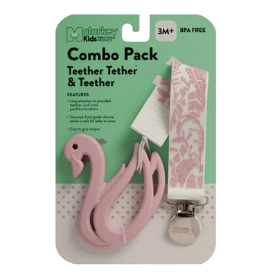 The Malarkey Kids Fox Teether Tether and Teether is a multi-purpose teething toy. The teether comes in a number of fun shapes designed for easy gripping while the tether’s patterns are textured to soothe baby and provide visual stimulation. Both teether and tether are made from soft, flexible, food-grade silicone with textures that gently massage baby’s gums. The convenient clip attaches to all fabrics while the interchangeable loop attaches to most pacifiers and teethers keeping them close and clean.