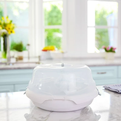 You don’t want harsh chemicals anywhere near your baby and his feeding supplies, but you don’t have the counter space for a traditional bottle sterilizer, either, so how can you ensure everything is squeaky clean? The Munchkin Steam Guard Microwave Sterilizer is a safe, natural and efficient way to kill up 99.9% of bacteria on bottles, nipples, pacifiers, teethers, small toys and breast pump accessories right in the microwave. There’s enough room to sterilize up to 4 baby bottles and 2 breast pump shields at once. This compact baby sterilizer fits all standard microwaves and works with both regular and wide-mouth bottles. The locking tab is designed to safeguard everything inside and prevent accidental opening, too. Baby-safe cleaning should always come this naturally.