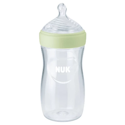 Now your baby can transition from breast to bottle in a natural way with the NUK® Simply Natural® Bottles. Designed to mimic the fit, flow, and movement of mom as closely as possible, this is the only bottle with up to 9 nipple holes, just like mom. This provides a natural feeding experience to ensure the mom-baby bond remains strong. NUK® Simply Natural® bottles feature a super-soft nipple that mimics the shape of mom’s breast while breastfeeding. The scoop nipple cavity allows space for baby’s tongue and jaw to move naturally, just like they do when breastfeeding. Now NUK® Simply Natural® bottles feature SafeTemp technology, which lets you know when milk is too hot. The blue thermometer indicator fades when milk is too hot and reappears when milk has cooled and is safe to drink.
