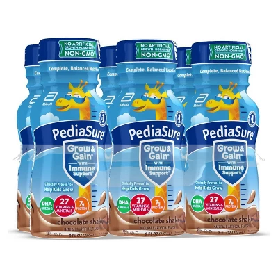 PediaSure Grow & Gain with Immune Support* kids nutritional shakes are clinically proven† to help kids grow. Each shake has 7 key nutrients for immune support,* 27 essential vitamins and minerals, 7g of protein to help build muscles, and 32mg of DHA omega-3 for brain & eye development. PediaSure Grow & Gain is non-GMO,‡ gluten-free, has no artificial growth hormones,§ and is suitable for lactose intolerance. It’s great for breakfast, in a lunch box, and as a snack. From the #1 pediatrician recommended brand. Not for children with galactosemia. * Nutrients include protein, vitamins A & D, zinc, and antioxidants (vitamins C & E and selenium). † Studied in children at risk for malnutrition. ‡ Ingredients not genetically engineered. § No significant difference has been shown between milk derived from rbST-treated and non-rbST-treated cows. ‖In children ages 3-4 at nutritional risk (5th-25th weight-for-height percentiles), when given 2 servings per day and dietary counseling.