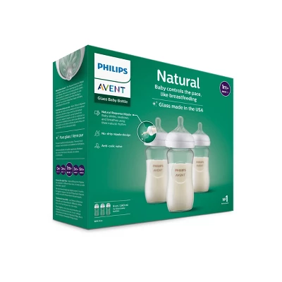 - Philips Avent Glass Natural bottle with the Natural Response nipple lets baby control the pace of the milk, like they do when breastfeeding.