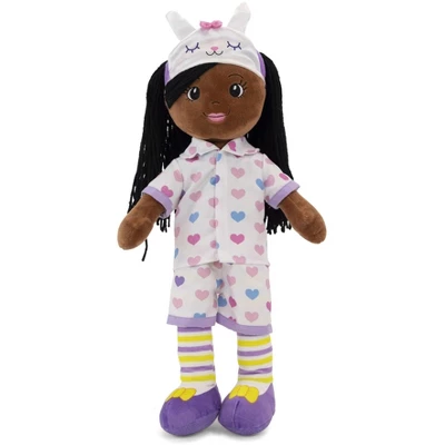 Kaylie’s favorite place in all of Sharewood is her boutique. She loves it so much that she brings it with her wherever she goes. Unfold Kaylie’s packaging to reveal the fun boutique playscape and let the adventures begin. Kaylie measures 18-Inches tall and comes dressed in a yellow sleeveless dress accented with a purple belt, eyelet lace trim, and a purple headband. She is as soft as she is unique and loves to share clothing, accessories, and playscapes with all of her 18-inch friends and other popular doll brands. Not only does Kaylie come with her own uniquely designed outfit that matches her fun personality but also included is an adorable two-piece pajama set with a sleeping mask to change into before bedtime. After a day full of adventures, cozy pajamas make for the best bedtime cuddles.