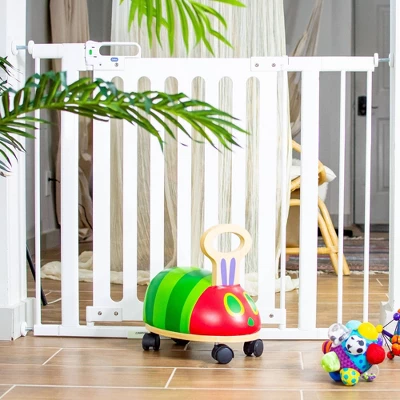 - All Qdos Pressure Mount Baby Gates come with 2 included extensions; purchase up to 2 additional pairs of Extensions for a total of 6, which extends the baby gate to a maximum overall width of 48.8”.