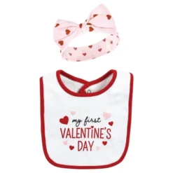 Hudson Baby Infant Girl Cotton Bib And Headband Or Caps Set, Valentine Sweetheart, One Size