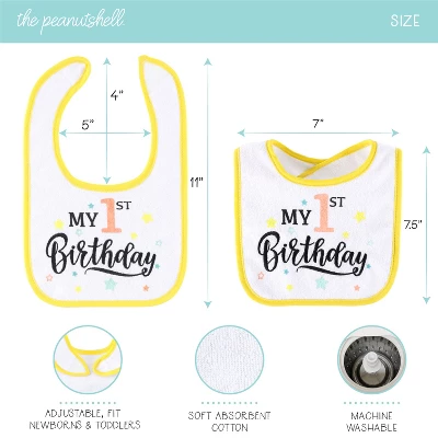 Quickly clean up your little one’s adorable face from spills, spit ups, and dribbles with The Peanutshell Terry Bibs for Baby Boys, 20 Pack for Feeding, Teething, or Drooling. Dino Boy theme bibs come in blue, green, rust & black. It’s paired with our Milestone Holiday collection in bold & bright colors for each occasion.